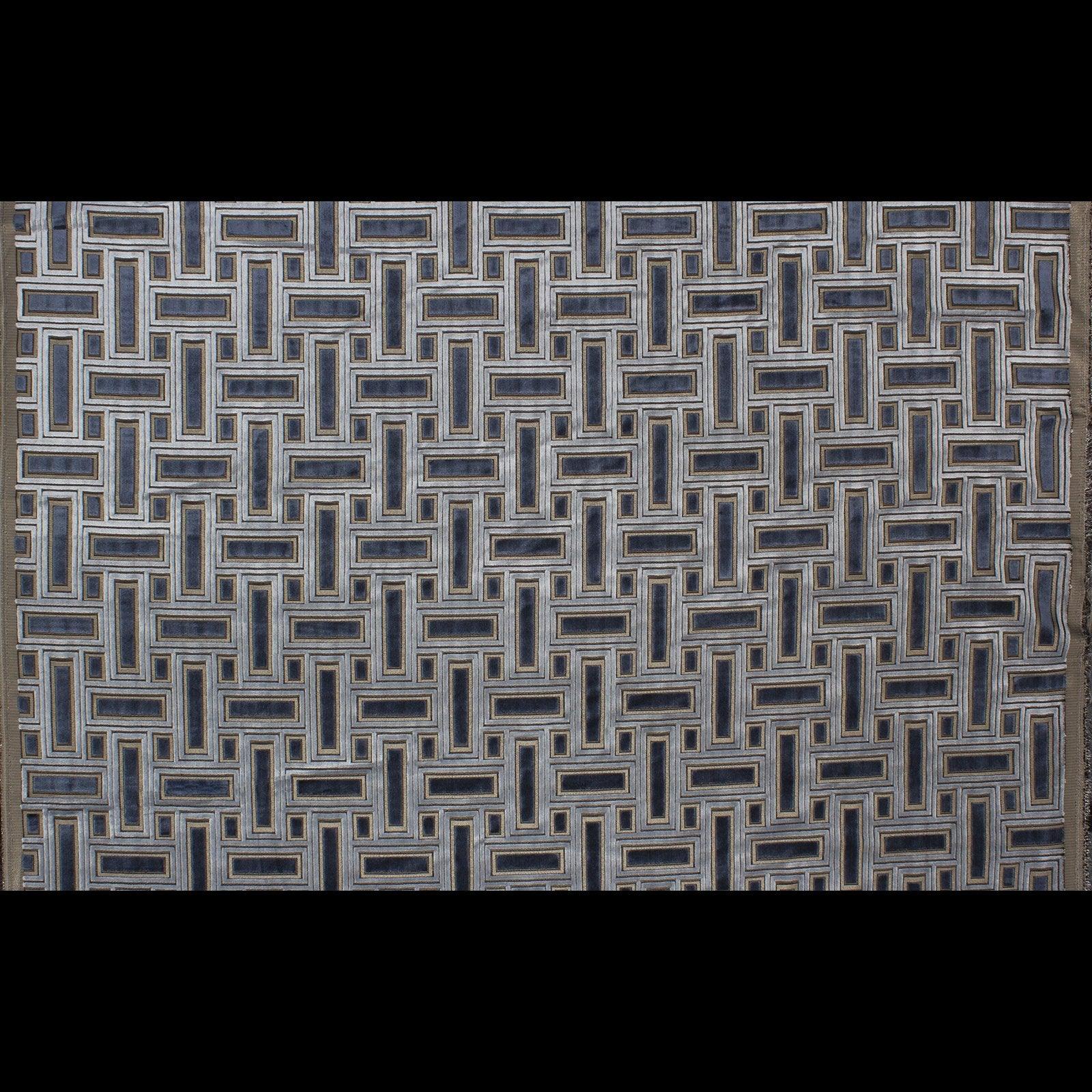 Soft pink never felt so sophisticated in this geometric cut velvet, combined with silver metallic accents and paired with a soft taupe for a luxurious color combination. Best for upholstery and pillows.